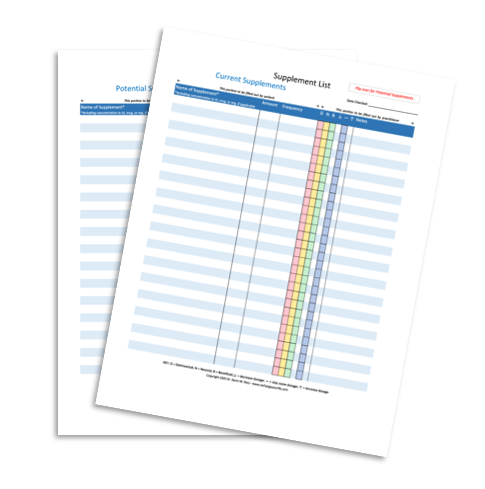 Want to know if the supplements you’re taking are beneficial? Print out our check list and schedule a “supplement check” appointment!